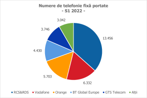În prima jumătate a anului 2022 au fost portate 36.709 de numere de telefonie fixă, reprezentând 6% din totalul numerelor portate în această perioadă. Majoritatea numerelor de telefonie fixă portate au fost împărțite astfel: RCS & RDS – 13.456, Vodafone – 6.332, Orange – 5.703, BT Global Europe – 4.430 și GTS Telecom – 3.746.
