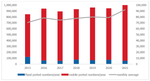 Among the 54,871 fixed numbers ported in 2021, 7,947 were location-independent numbers, freephone numbers and Premium Rate numbers.